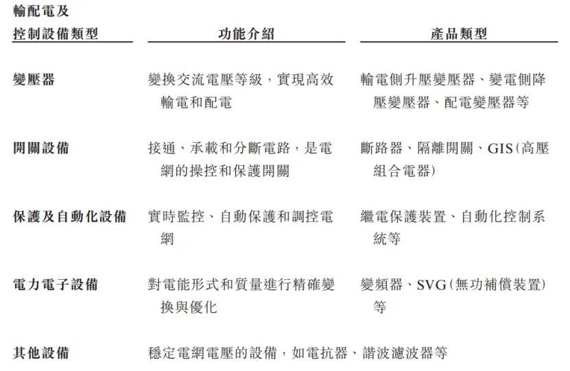 各类输配电及控制设备介绍,来源:招股书