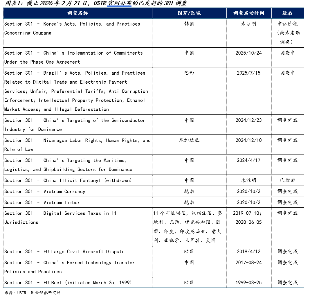 在这一约束下,美国贸易代表办公室(USTR)将维持第301条和第232条下的既有关税,并计划启动更多贸易调查。同时,大概率将加快推进相关程序,力争在122条款到期前完成新的301调查,形成可落地实施的替代性关税方案,以避免政策出现“断档”。
