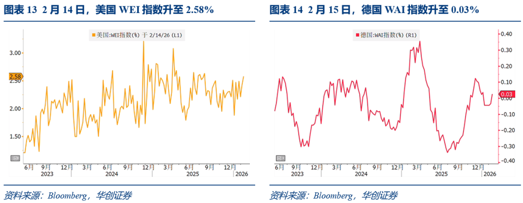 美国经济活动回升。2月14日当周,美国WEI指数升至2.58%,上周为2.43%。