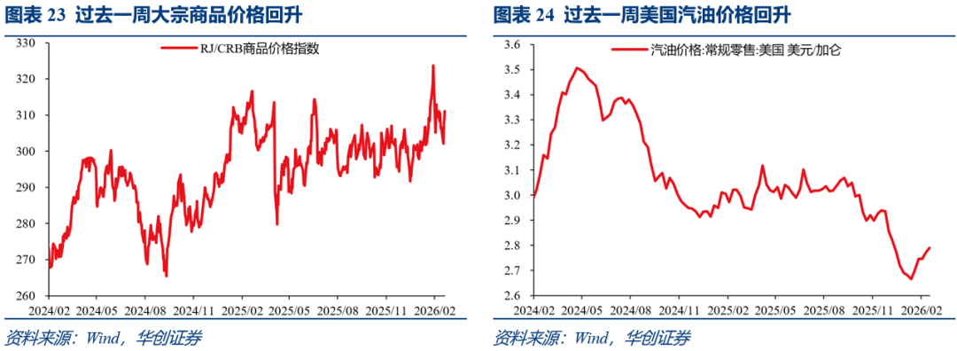 大宗商品价格回升。2月20日,RJ/CRB商品价格指数录得311.02,较一周前+1.5%,较两周前+0.5%。