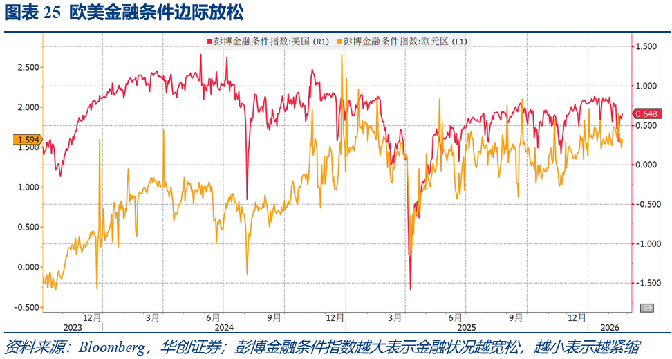 欧美金融条件指数上行。2月20日,美国、欧元区金融条件指数分别为0.648、1.594,一周前分别为0.537、1.562,两周前分别为0.755、1.714。