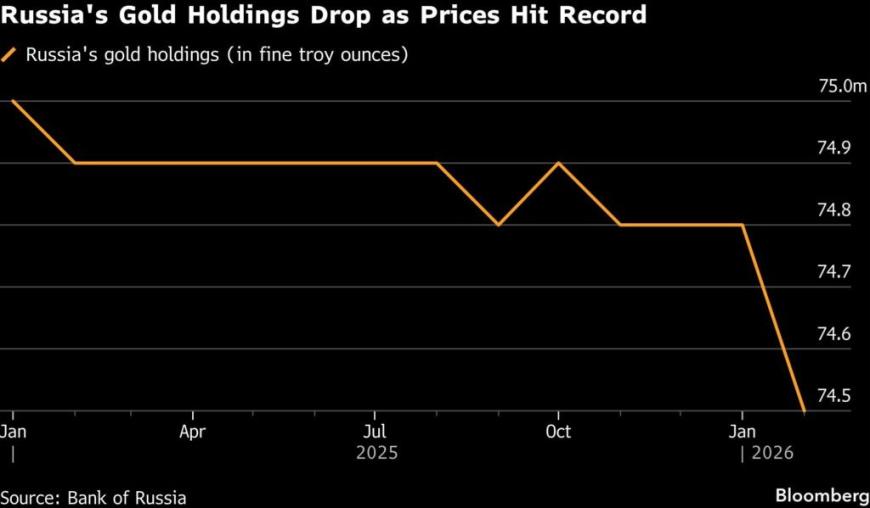 俄罗斯央行(CBR)最新数据显示,今年1月在金价飙升并一度突破5500美元/盎司创历史新高之际,俄央行从官方储备中出售了相当规模的黄金,这是自去年10月以来俄罗斯黄金储备首次出现下降。