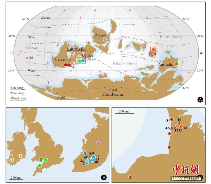 本项研究的晚泥盆世法门期全球种子植物的地理分布。研究团队 供图