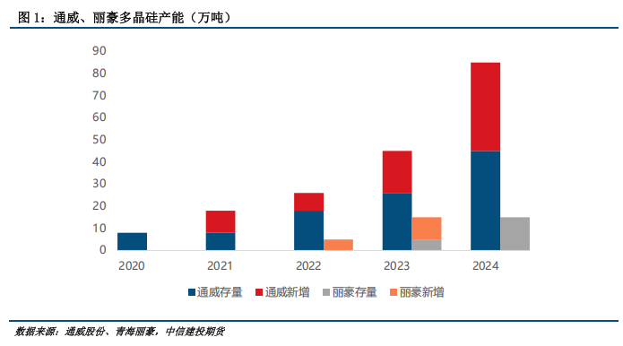 根据通威股份公告,公司已与丽豪清能董事长段雍、海南卓悦企业管理合伙企业(有限合伙)、海南豪悦企业管理合伙企业(有限合伙)三家交易意向方签署了股权收购《意向协议》。作为本次收购的标的,丽豪清能成立于2021年4月,主营光伏级高纯晶硅、电子级多晶硅等半导体材料的研发、生产和销售,是行业内成长迅速的后起之秀。据百川盈孚统计,通威多晶硅年规模位居行业第一;青海丽豪产能位居行业第六。