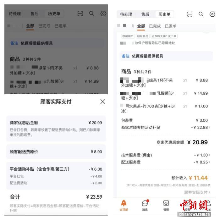 大额补贴下商家现“负收入订单”