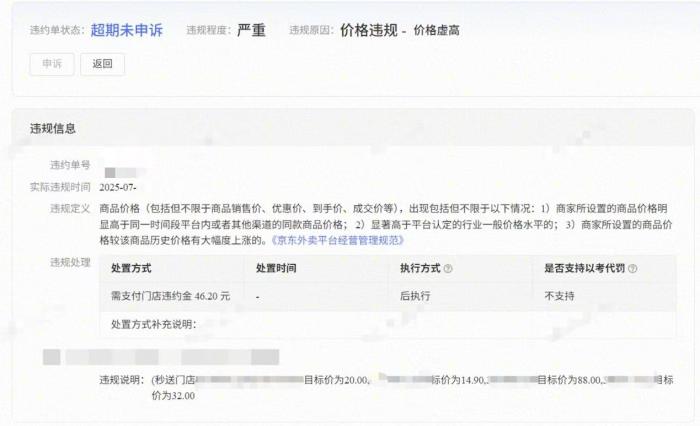 京东外卖的处罚截图。 受访者供图