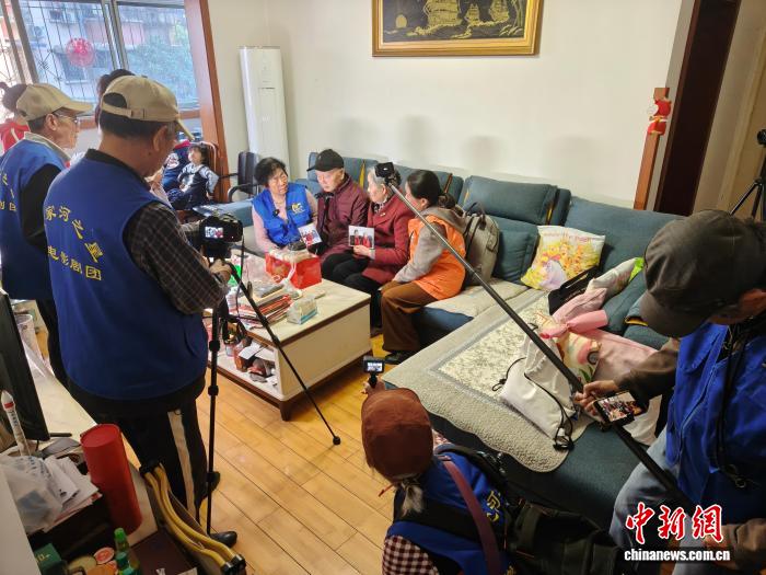 图为“肖家河之星”微电影剧团上门为社区高龄老人拍摄。陈选斌 摄