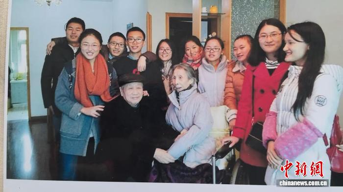 图为“肖家河之星”微电影剧团拍摄的大学生志愿者与高龄老人的合影。(资料图)受访者供图