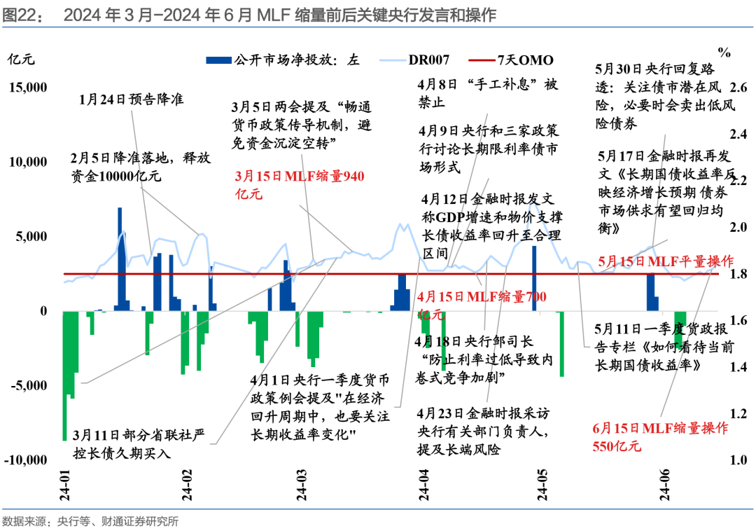 2024年3月-6月MLF缩量续作,核心原因是防止资金空转,另一方面也是为了稳汇率和降准置换。