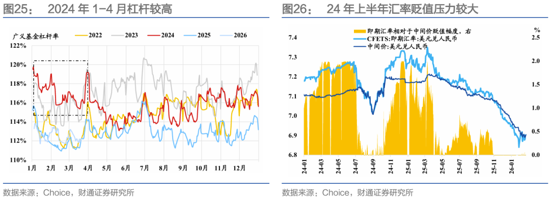 另外一方面,我们关注到24年上半年,在美联储维持高利率、美元指数走强背景下,央行通过逆周期调节因子等运用避免汇率超调,稳汇率诉求可能导致4月、5月、7月MLF缩量。