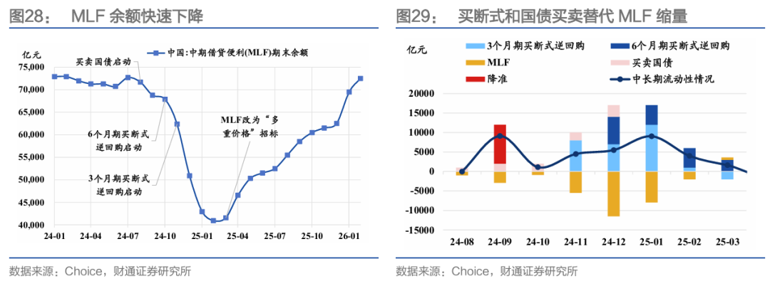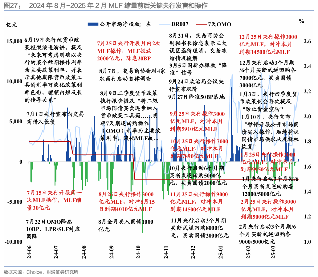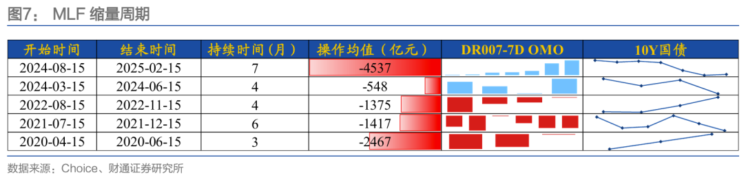 2024年8月-2025年2月MLF缩量续作,核心原因是货币政策新框架下的中期流动性投放工具调整(从MLF到买断式和国债买卖),另一方面有稳汇率、防止资金空转的考量。