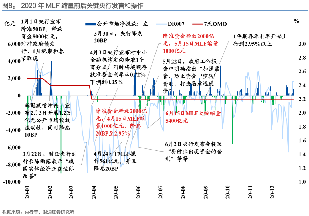 2020年4月-6月MLF连续缩量续作,一方面是降准置换,但更重要的原因是我国全面走出疫情、货币政策正常化,开始考虑防止资金空转。