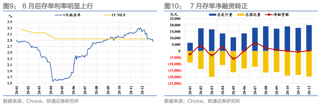 进入7月,伴随着存单市场利率的快速上行,银行主动报量诉求有所增加,MLF和存单净融资开始转正。