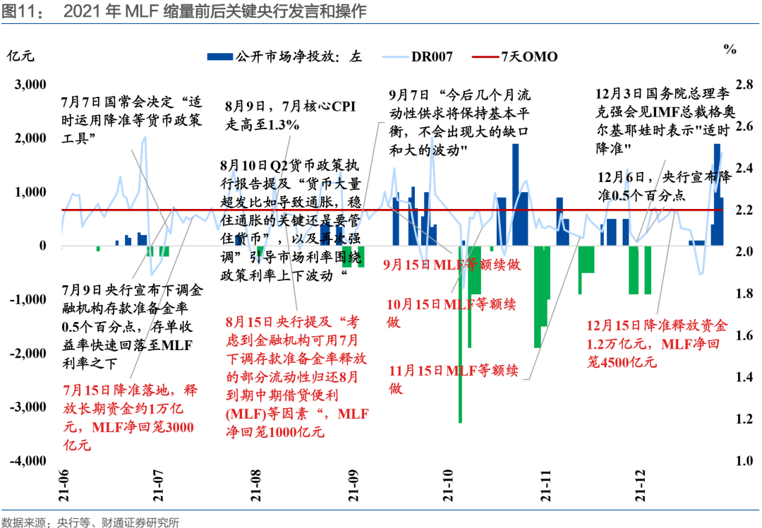 2021年7月和12月央行降准,对应释放流动性置换7-8月、12月MLF到期,进而实现净回笼。