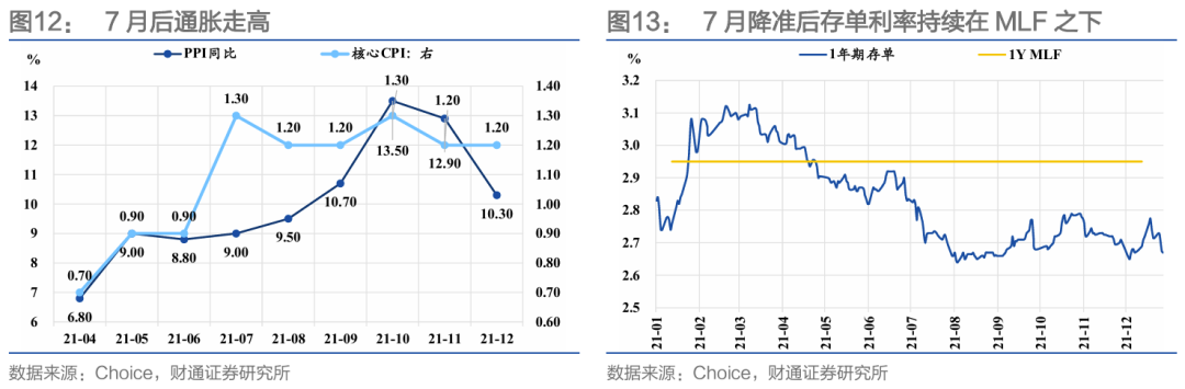 2021年7月-12月MLF缩量续作,核心是因为降准后对MLF形成置换以及银行主动报量诉求的下降,另一方面也有对通胀的考量。