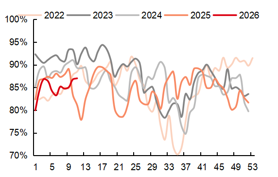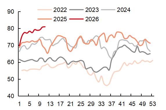 除上述重碱需求之外,一季度轻碱需求表现良好,整体需求稳中偏强,开工率基本处于高位。根据华泰期货研究院推算,2026年1—2月,全国轻碱表需同比增长17.5%。