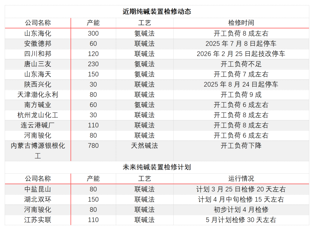 今年部分纯碱厂家有小幅检修情况,但由于产能增加,对产量的影响有限。