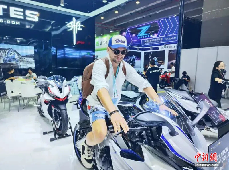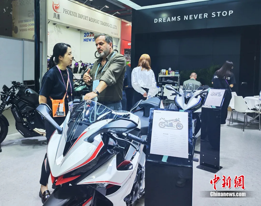 广交会“江门造”摩托新款产品受到外国客商喜爱。何榕 摄