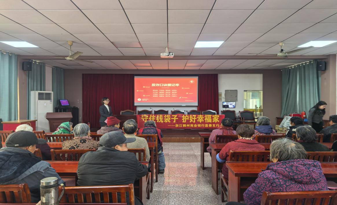 嘉兴欣杨村文化礼堂里,座无虚席。台上,一位穿着行服的“90后”小姑娘正在演一个“骗子”,夸张的语气和动作惹得台下的老人们哄堂大笑。这是嘉兴分行“银发课堂”上的一幕情景剧,用最直白的方式,把养老理财骗局的套路演给老人看。她们还专门准备了防诈骗口诀,带着老人们一句一句念。念完几遍,几位头发花白的爷爷奶奶抢着背诵,脸上露出孩子般得意的笑容。