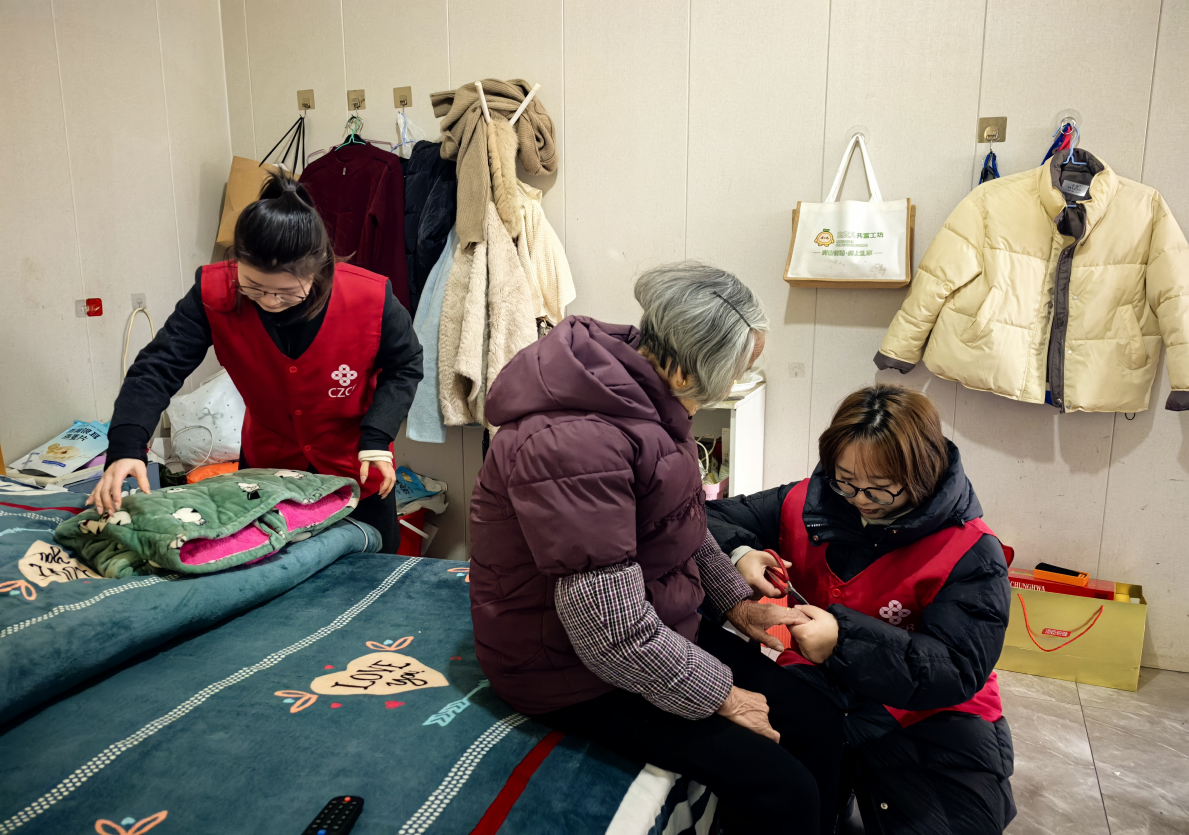衢州衢江支行的青年志愿者们则驱车来到万田乡慈张村,探望90岁高龄的郑奶奶。志愿者们一进门便分工忙开,有人叠被铺床,有人扫地擦桌,把散落的杂物归置整齐;还有人蹲在奶奶身边,小心翼翼地替她修剪指甲、梳理头发。郑奶奶坐在那里,看着这群忙前忙后的年轻人,眼眶泛红,不停地点着头。
