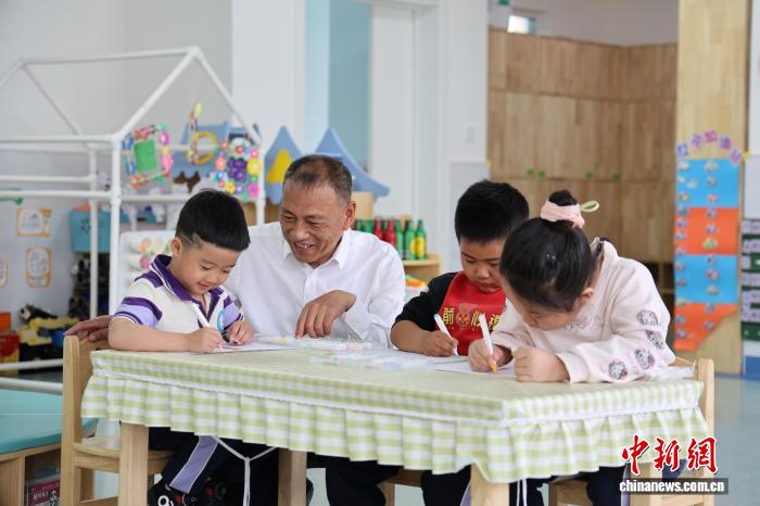 图为赵海涛与孩子们互动。 曾令刚 摄