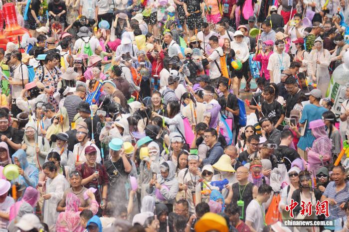 4月15日,傣历1388年新年节泼水狂欢活动,民众相互泼水送祝福。中新网记者 刘冉阳 摄