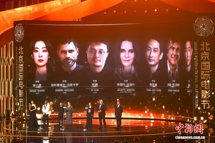 4月16日,第十六届北京国际电影节开幕。图为本届北影节“天坛奖”国际评奖委员会亮相开幕式现场。中新社记者 易海菲 摄