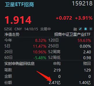 4月20日午后,卫星产业链全线爆发。截至14时6分,卫星ETF招商(159218)放量大涨3.96%,盘中一度冲高至4.51%。成分股表现炸裂——中国卫通、中国卫星双双涨停封板,航天电子、卓胜微、国机精工、海格通信等涨幅居前。资金热度不减,据Wind Level-2实时数据估算,该ETF盘中净流入超2亿元。